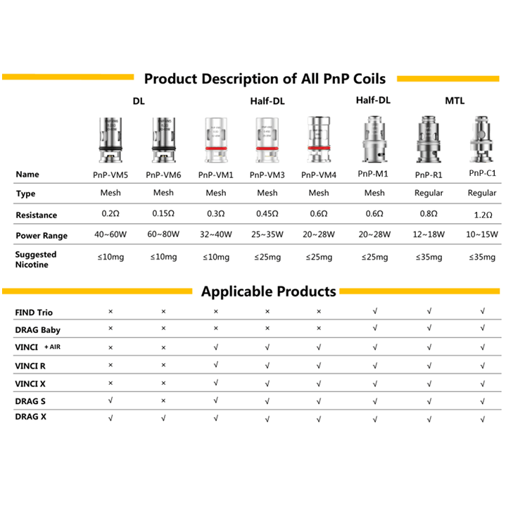 VOOPOO PnP Mesh Grejači 0.15ohm i 0.3ohm kompatabilni sa: